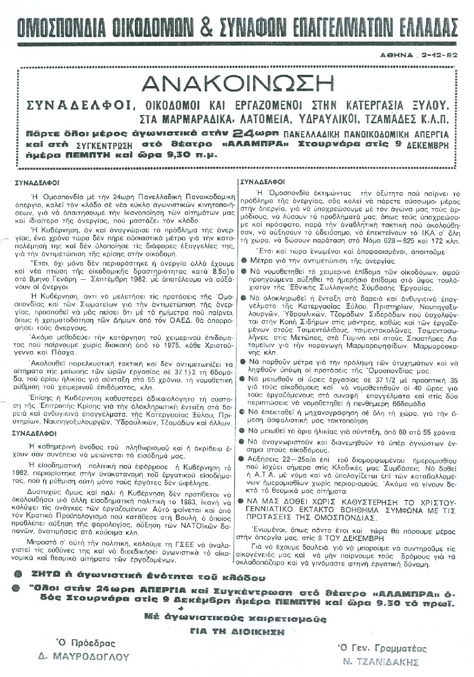 24ωρη Πανελλαδική Πανοικοδομική Απεργία στις 9 Δεκέμβρη