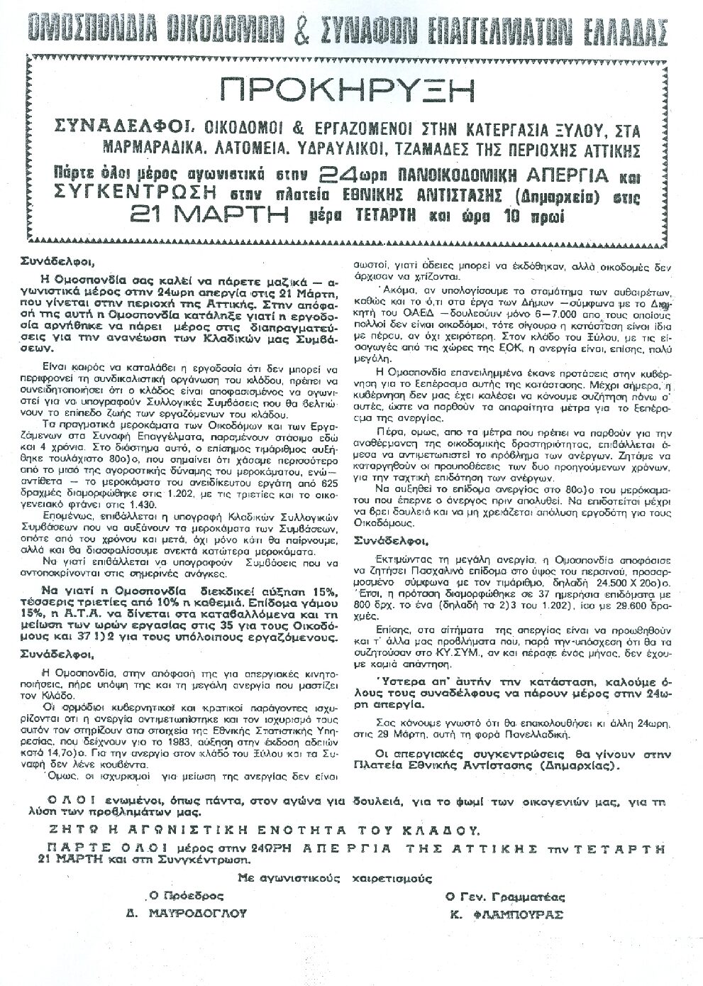 24ωρη Πανοικοδομική Απεργία στις 21 Μάρτη