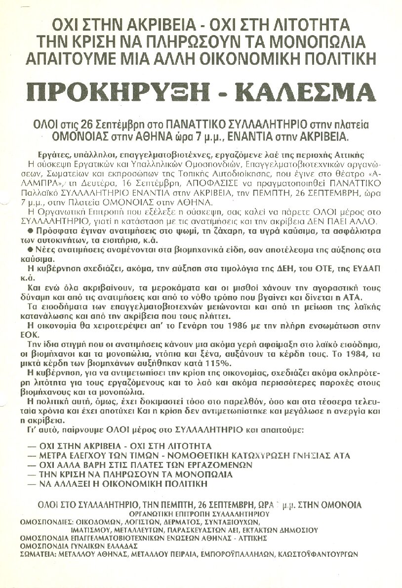 Όλοι στο Παναττικό Συλλαλητήριο ενάντια στην Ακρίβεια