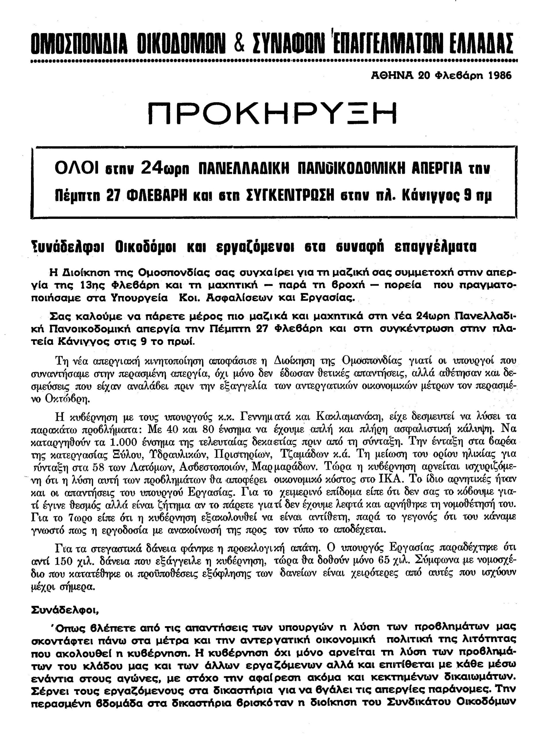 27 Φλεβάρη Πανοικοδομική Απεργία