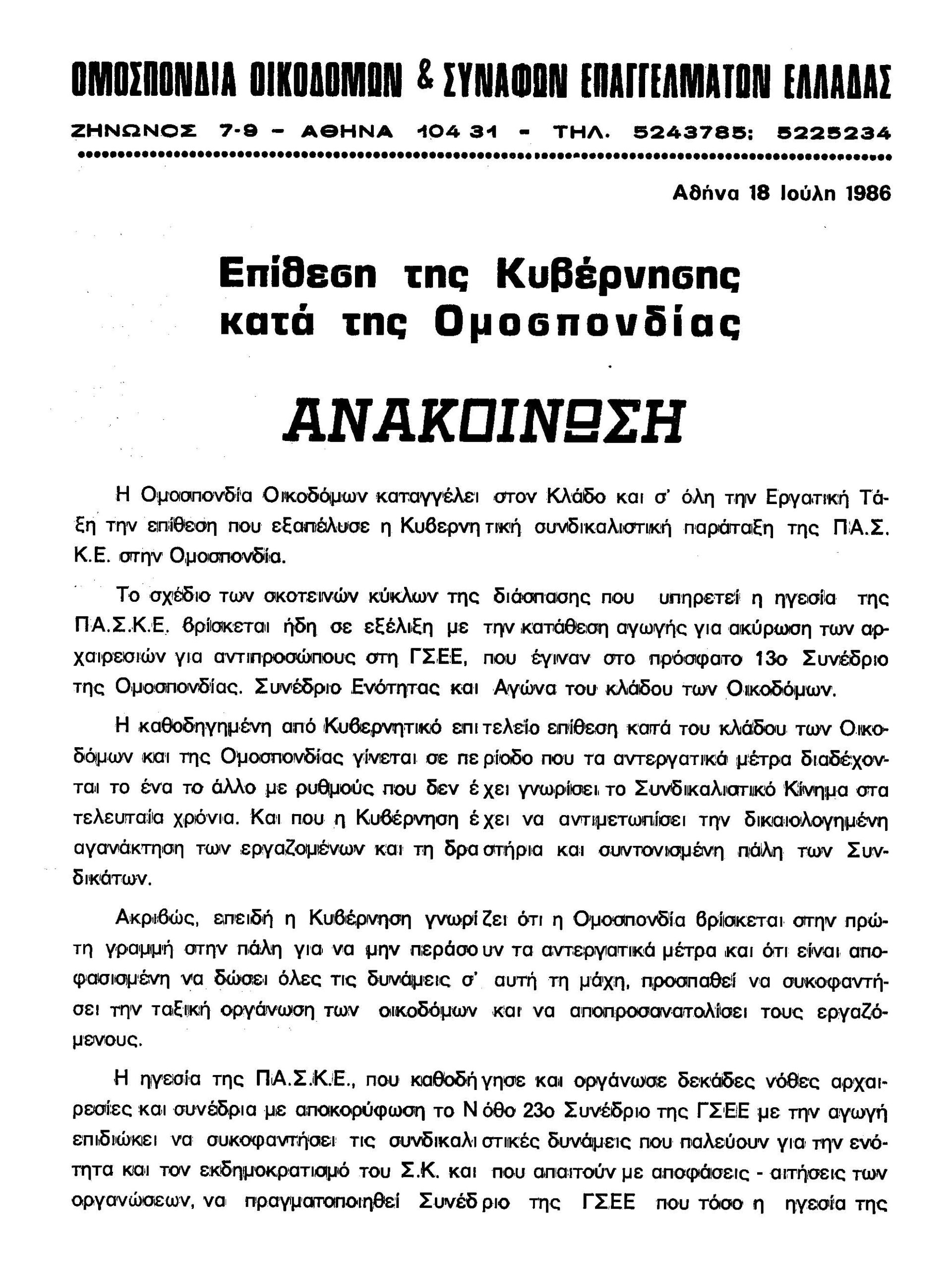 ΑΝΑΚΟΙΝΩΣΕΙΣ