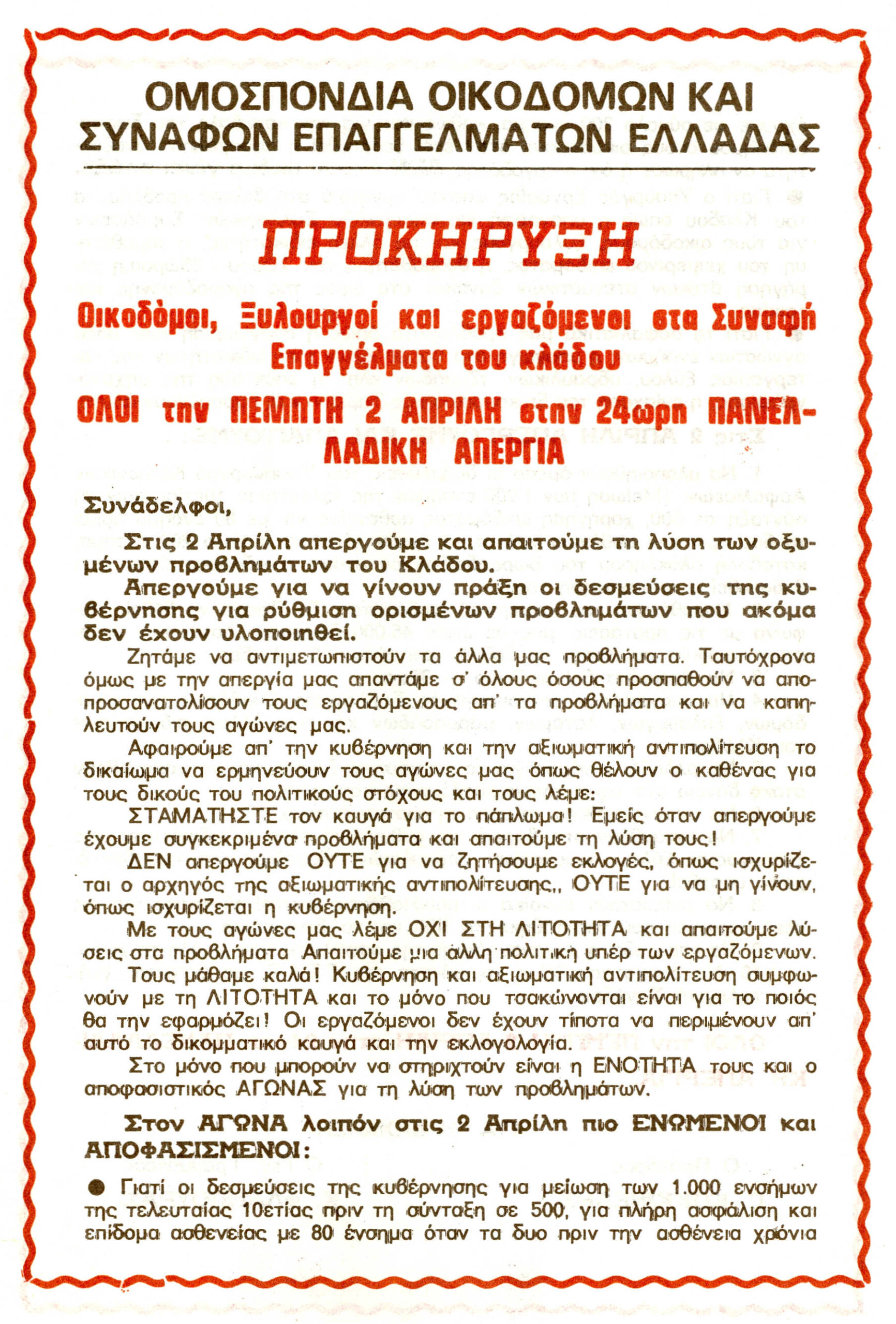 Πανοικοδομική Απεργία στις 2 Απριλίου
