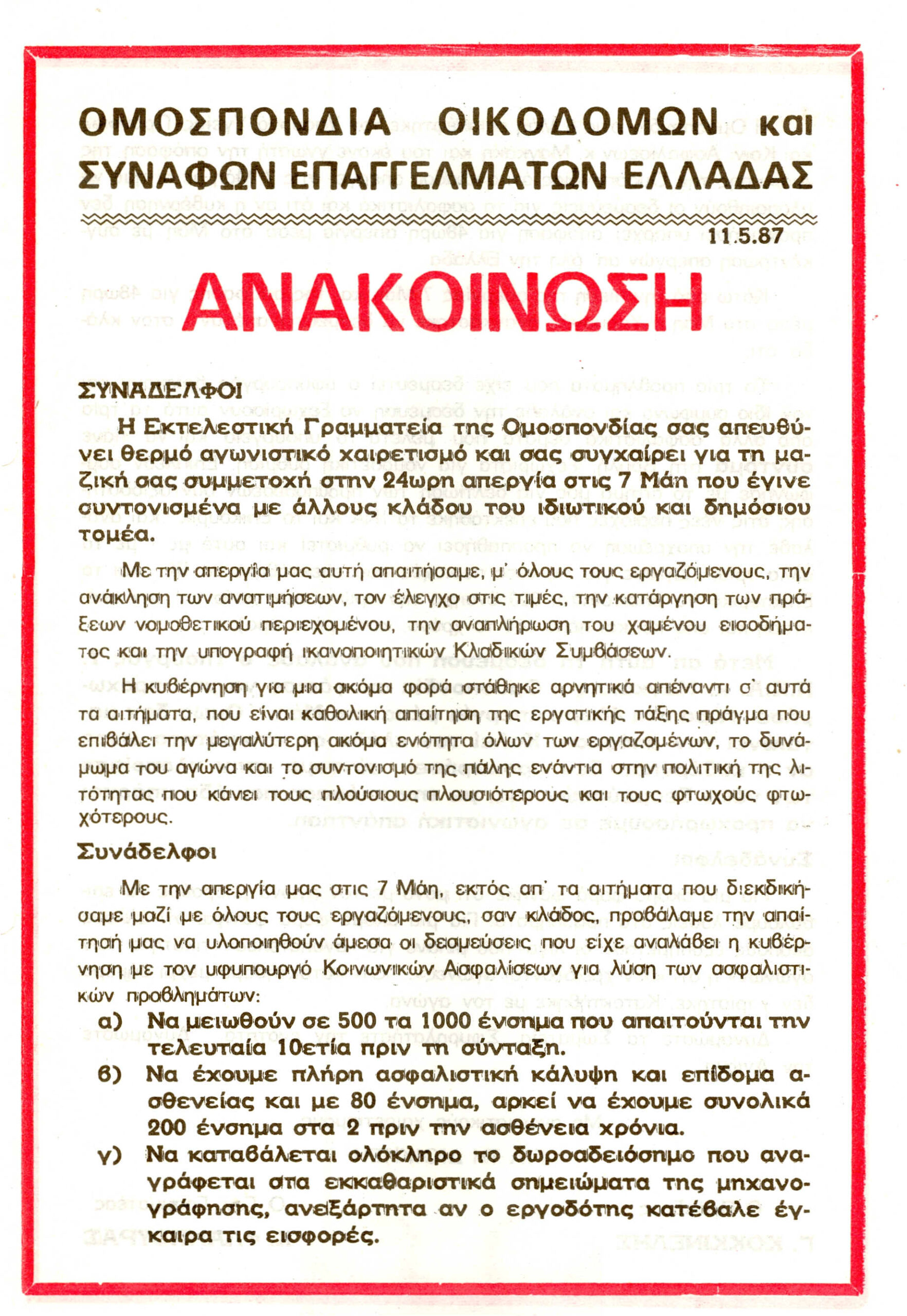 Για την Απεργία στις 7 Μαίου