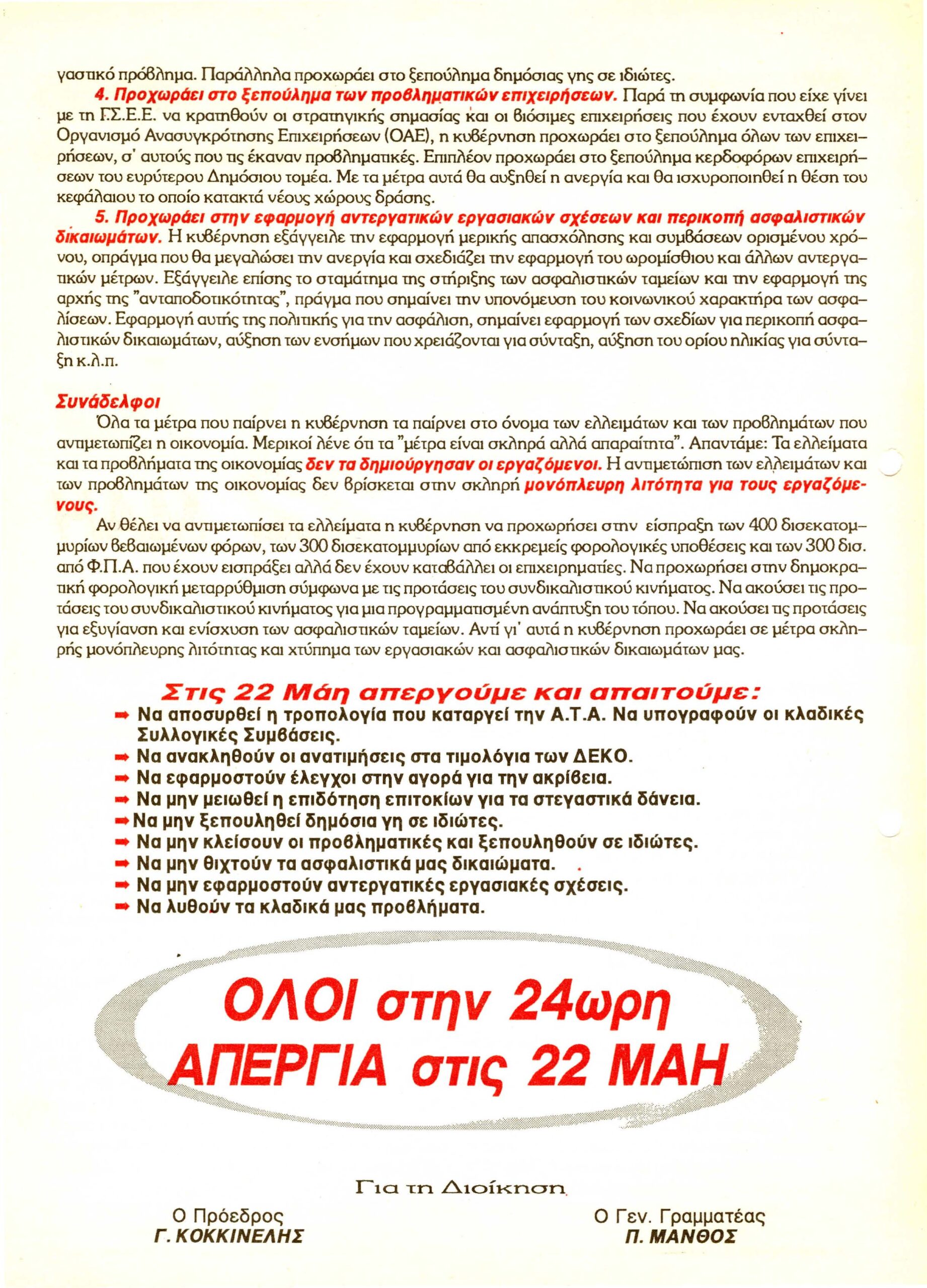 Όλοι στην 24ωρη Απεργία στις 22 Μάη