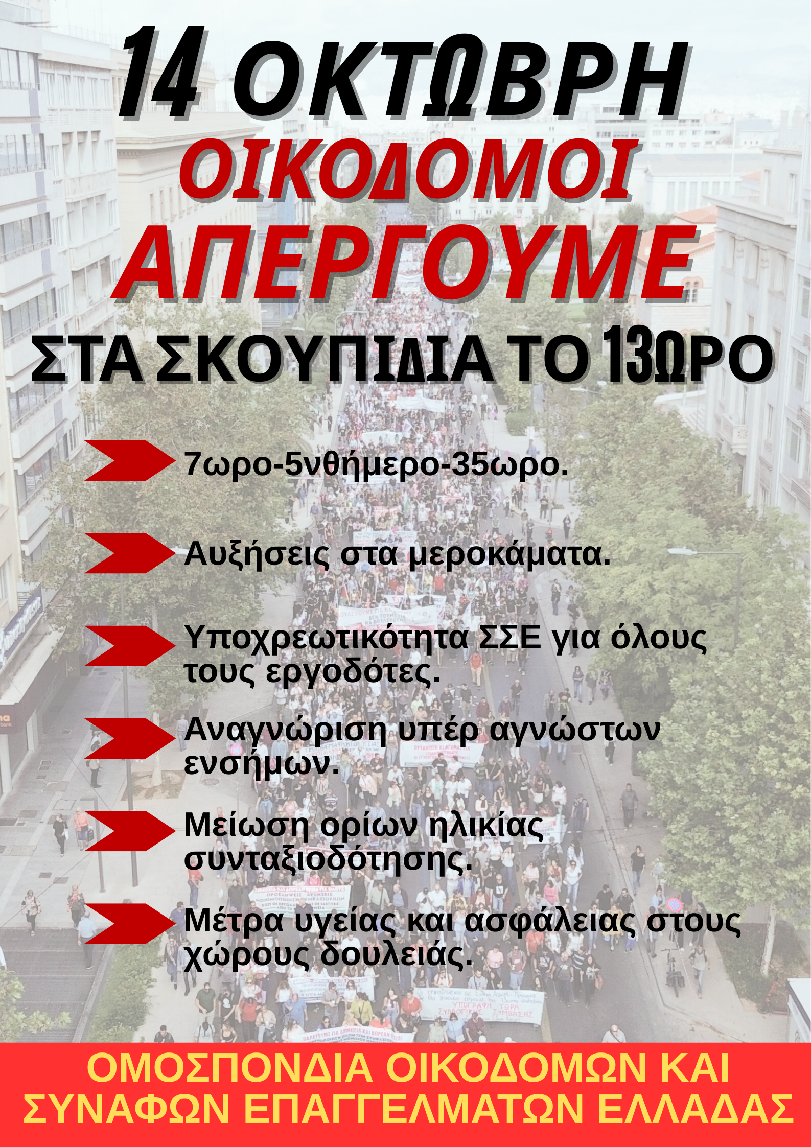 Τρίτη 14 Οκτώβρη, ΑΠΕΡΓΟΥΜΕ !