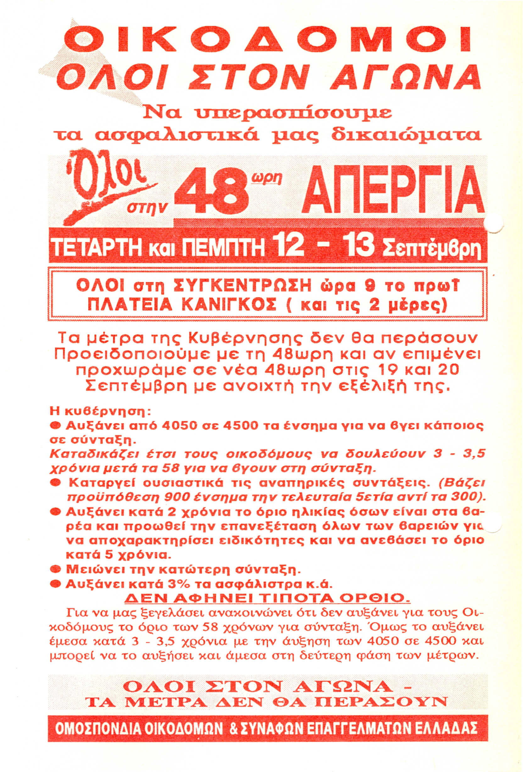 Οικοδόμοι, όλοι στην 48ωρη Απεργία 12 &13 Σεπτέμβρη