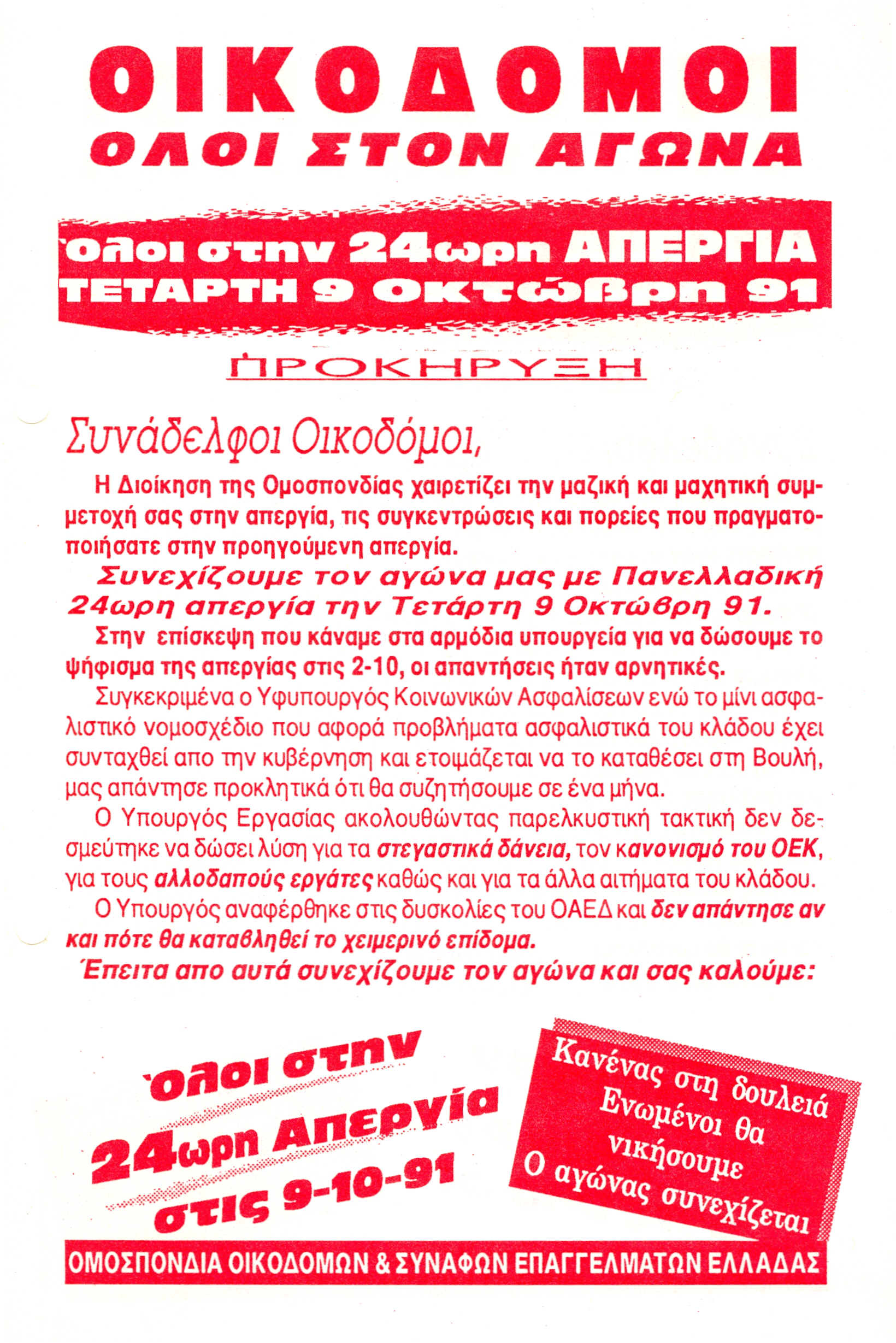 Όλοι στην 24ωρη απεργία την Τετάρτη 9 Οκτώβρη