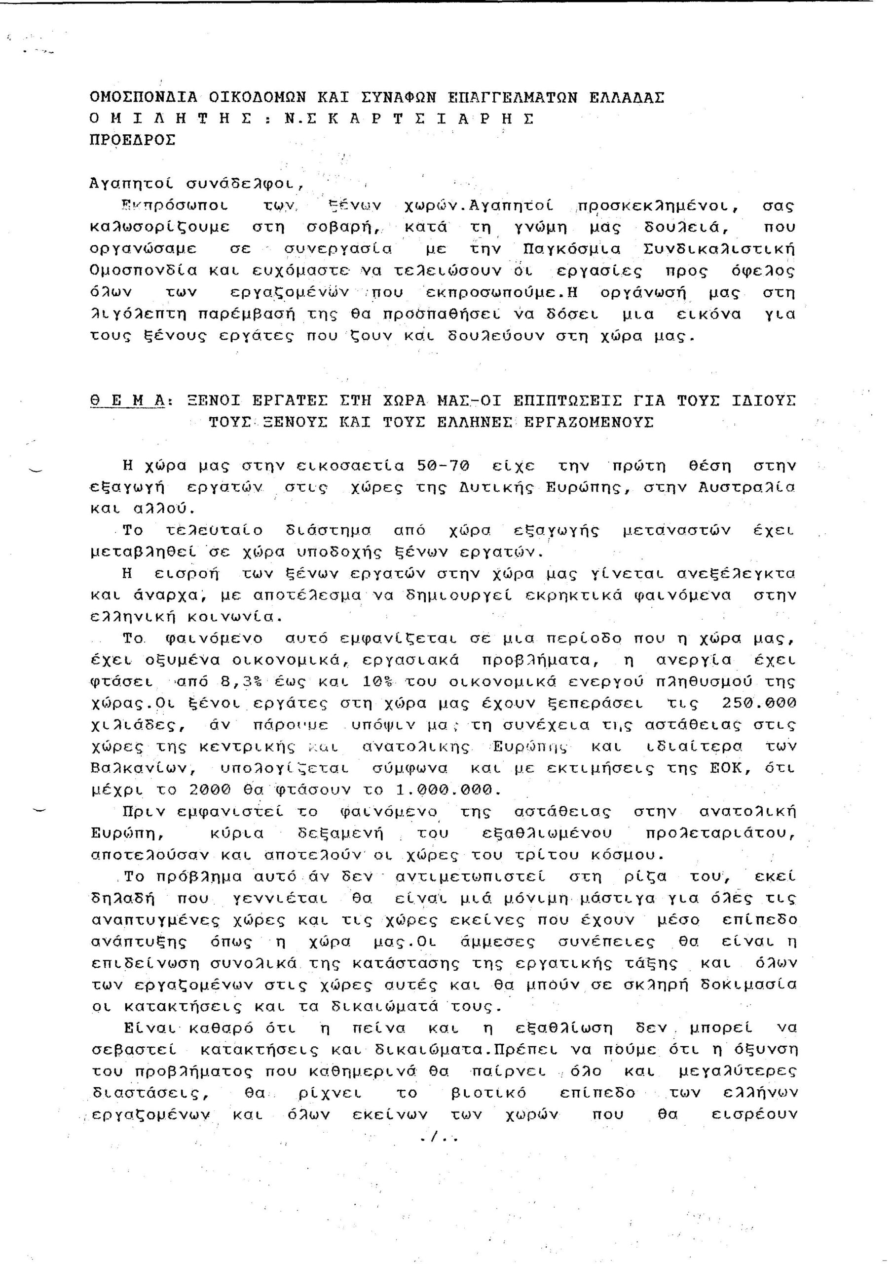 Η Ομιλία του Νίκου Σκαρτσιάρη, Προέδρου της ομοσπονδίας Οικοδόμων και Συναφών Επαγγελμάτων Ελλάδας: