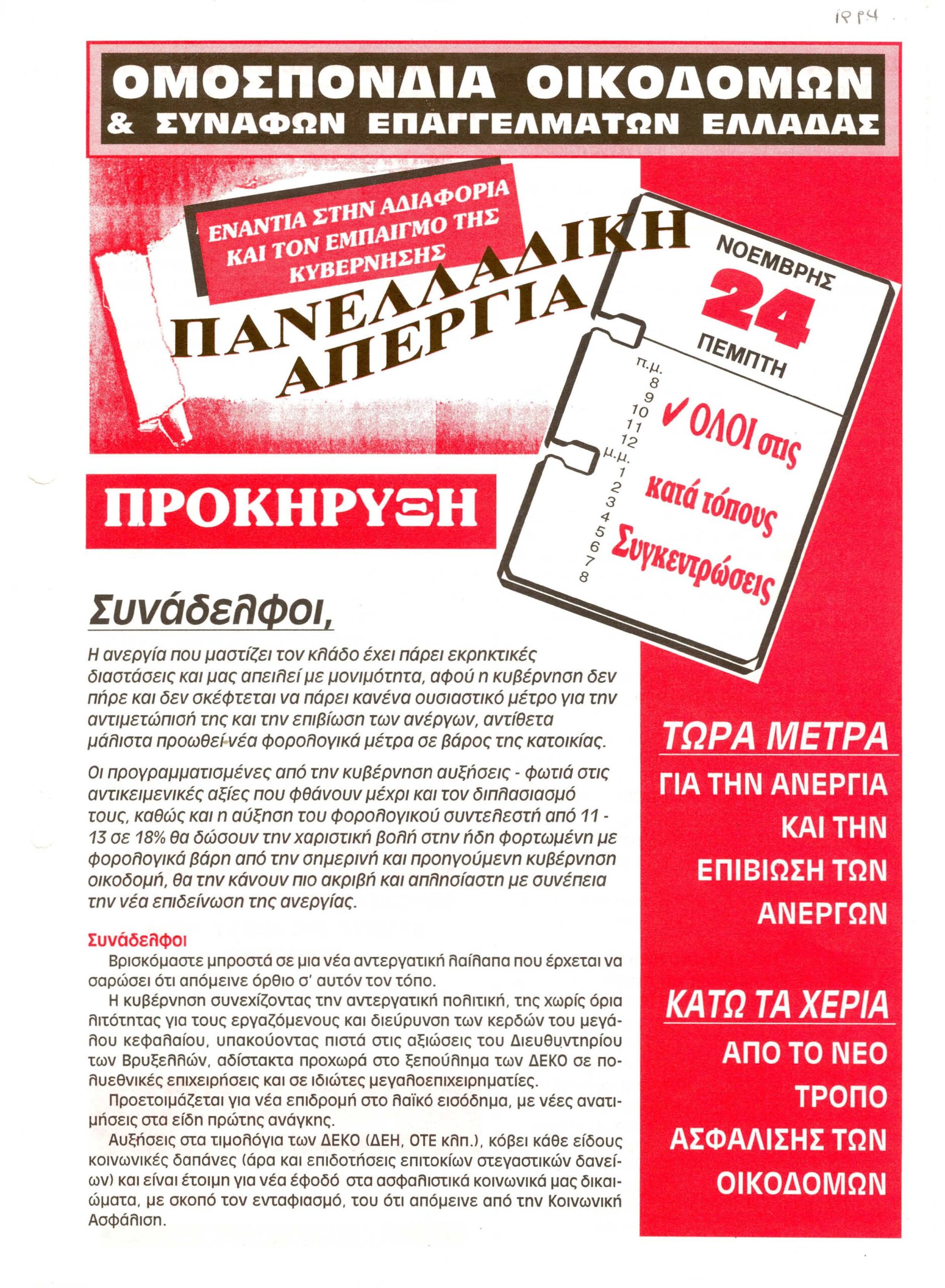 Όλοι στην Πανελλαδική 24ωρη Απεργία στις 24 Νοέμβρη