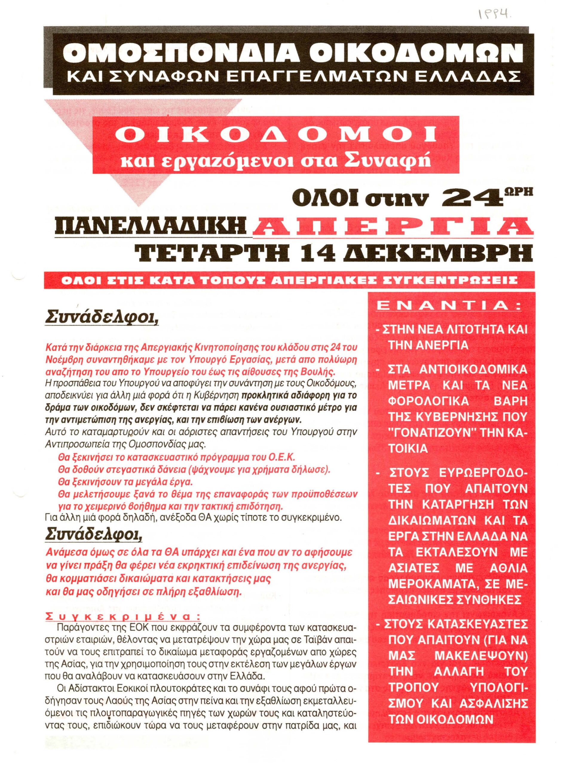 Όλοι στην Πανελλαδική 24ωρη Απεργία στις 14 Δεκέμβρη